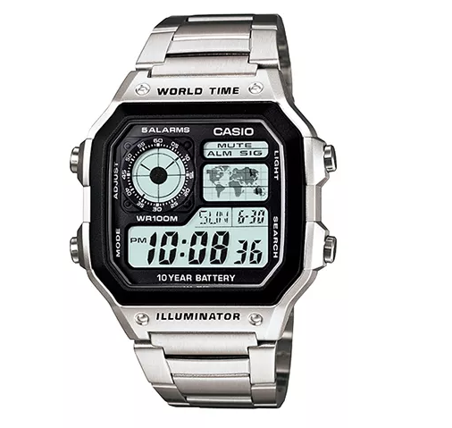 【胡一天同款】CASIO 卡西欧运动 石英 银色手表 男款 AE-1200WHD-1A