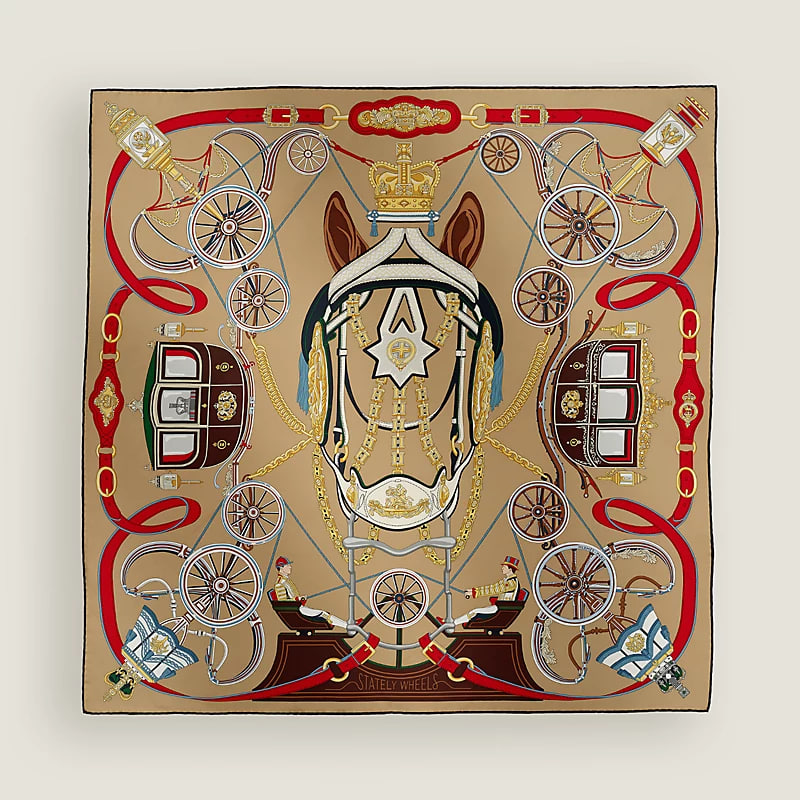 Hermès斜纹真丝面料手工卷边女士丝巾