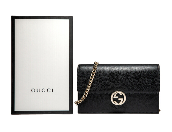 【GUCCI 古驰】女士黑色荔枝纹双G扣风琴链条单肩斜挎包 510314 CAO0G 1000