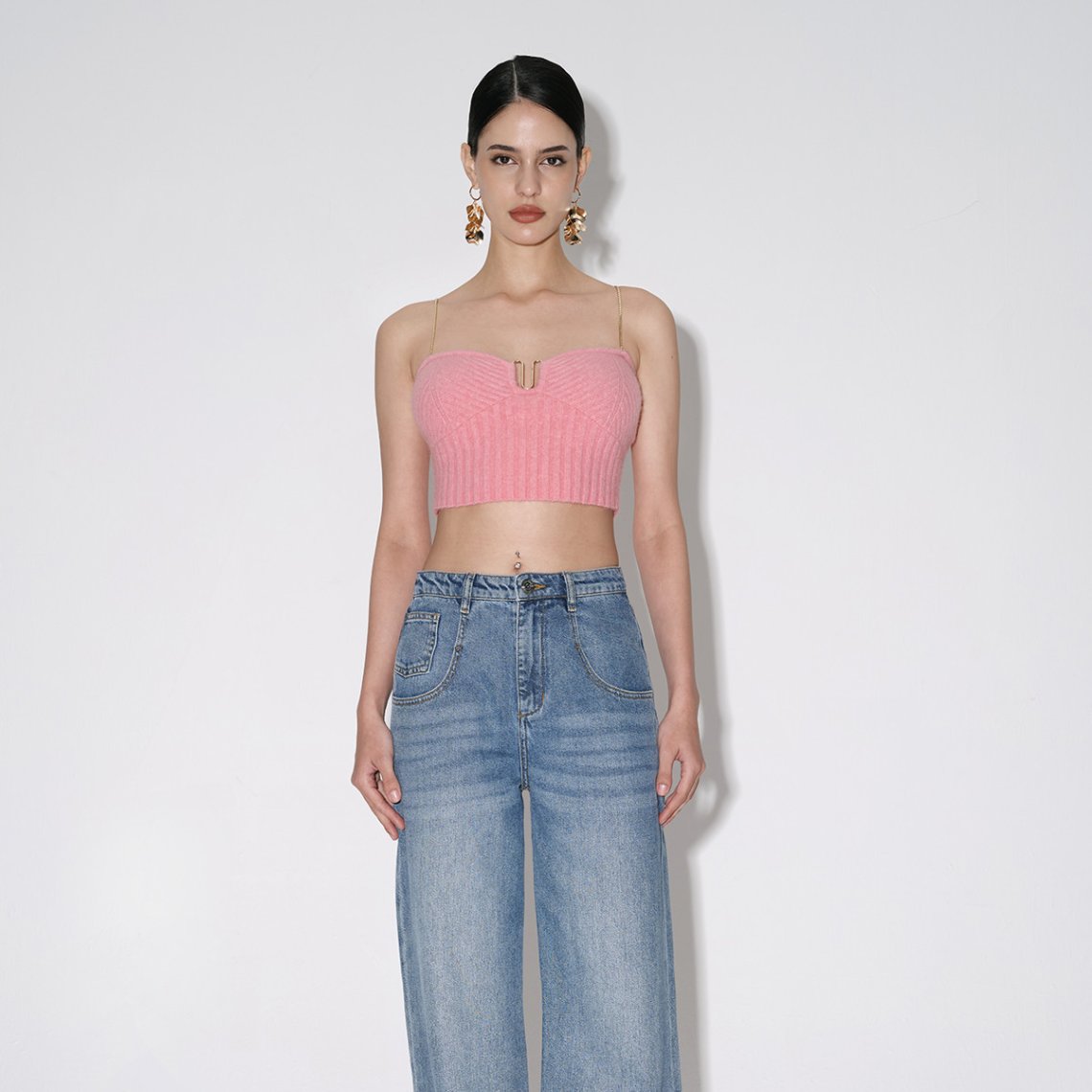 秋冬系列女士氣質金屬純色短款羊毛背心吊帶上衣
